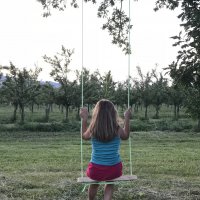Přímo v sadu je houpačka, pískoviště a skluzavka.