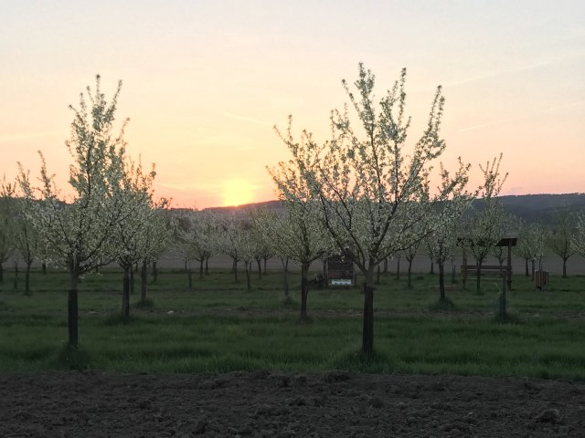 Krásné místo, přespání v sadu na okraji obce. Nic nám nechybělo. Jen nás překvapilo, že se na výstavbě nových domů vedle sadu pracuje i v neděli ráno. Není ale problém zajet hlouběji do sadu, kde je klid. V popisu pozemku je napsáno, že je na něm pískoviště, klouzačka a houpačka, ale nic z toho jsme nenašli. Tak nevím, jestli je informace ještě aktuální.