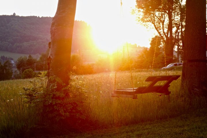 Místo je v prostřed louky u lesa, kolem je spoustu krásných cyklistických cest.