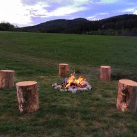 V případě deště bude pro osobní auta a karavany vyhrazeno stání na zpevněném parkovišti před domem.