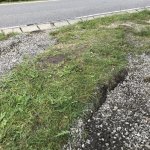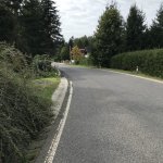 Výjezd z pozemku je mírně do kopce,tráva odstraněna, ale stane se při vlhku proklouznuti(písek k dispozici) Nájezd na silnici díky mírnému korytu na vodu někdy při dešti složitější. Najíždět z vrchu.