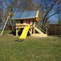 Dětský domeček s houpačkou, skluzavkou a pískovištěm k dispozici přímo na pozemku + hřiště v okolních vesnicích