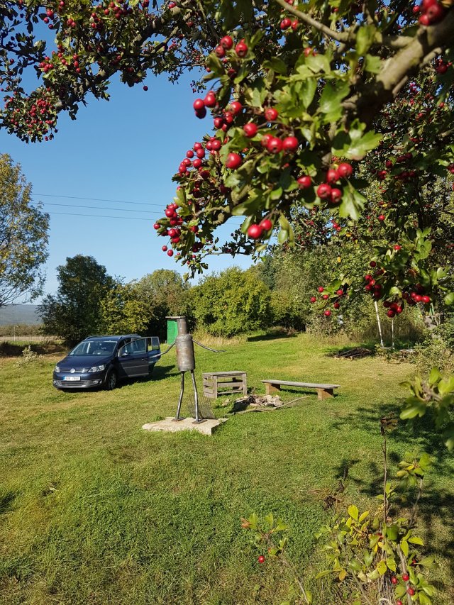 Louka je z části posekaná. Na této části můžete parkovat. Horní část je ponechána pro motýli a jiný hmyz. Na večerní oheň je suchého nasbíraného dřeva dostatek. K dispozici je na vlastní nebezpečí stromová houpačka. Ostatní aktivity jsou ve městě a jeho okolí.