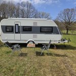 Na pozemku jsme byli sami, ráno nás probudil zpěv ptáků. Přístup od zámecké zahrady snadný, neměli jsme s obytňákem problém ani po mírném dešti.