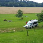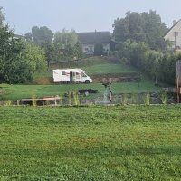 POZOR !!! vlečné karavany bez 4x4 pohonu vozu mohou mít při výjezdu problém se zahrabáním! Poté je nutnost zcouvat zpět, projít si cestu/louku podél hranice pole k novostavbám a zkusit tuto únikovou variantu. U spodní novostavby velkého bungalovu se musí pár metru přímo po poli - zemědělci moc přiorali, jakkoli se tam jedná o pruh obecní cesty. Tedy držím palce, zatím odjeli všichni.