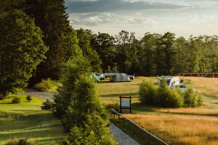 Jenom musíme zopakovat co je v ostatních recenzích - krásné místo, výborné jídlo v nedaleké restauraci, milí majitelé. Během dne zde sice bylo spousta návštěvníků na sousedním fotbalgolfu, ale po páté hodině a druhý den dopoledne jsme měli celý areál jen pro sebe. Je to také dobré výchozí místo pro výlety do okolí - můžeme doporučit např. výlet po žluté na Vlčí horu (cca 7km), kde je také rozhledna (bohužel nyní se opravuje). Při příjezdu doporučujeme dodržet instrukce majitele a vypnout si v navigaci polní a lesní cesty. My jsme tak neučinili a příjezd obytňákem po lesní cestě byl docela divočina.