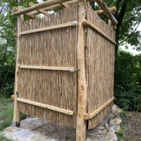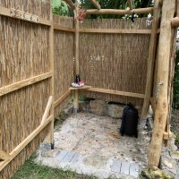 - Venkovní sprcha je řešena solárním pytlem na 40 l. Což znamená, že teče převážně pouze studená voda! U suchého WC je umyvadlo s mýdlem.