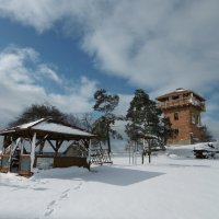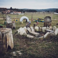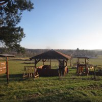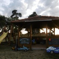 Na pozemku u rozhledy se nachází přírodní dětské hřiště s ohništěm a altánem