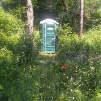 Přes prázdniny k tomu navíc ještě budka s umyvadlem v lesíku na konci louky.