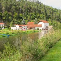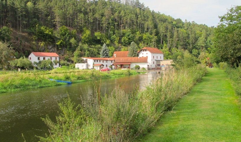100 m od louky místo vhodné pro koupání s dobrým přístupem do řeky pod jezem