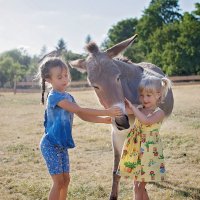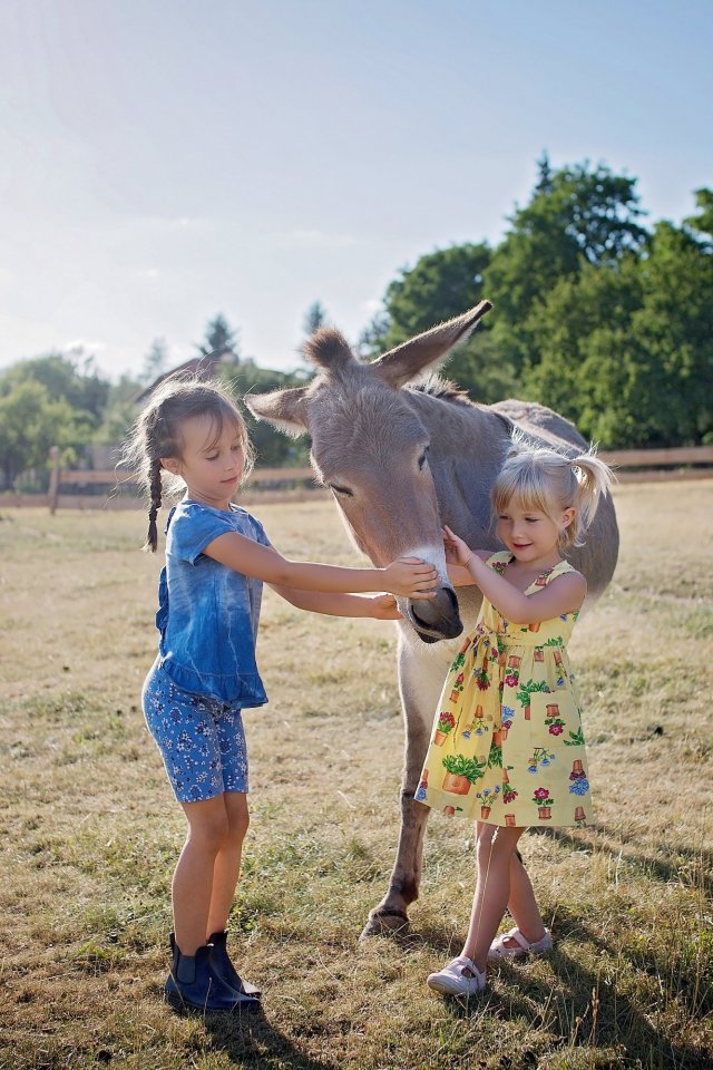 Prohlídka farmy, interakce se zvířátky. Přírodní hřiště v lese.