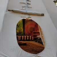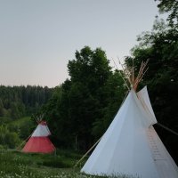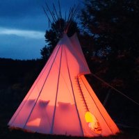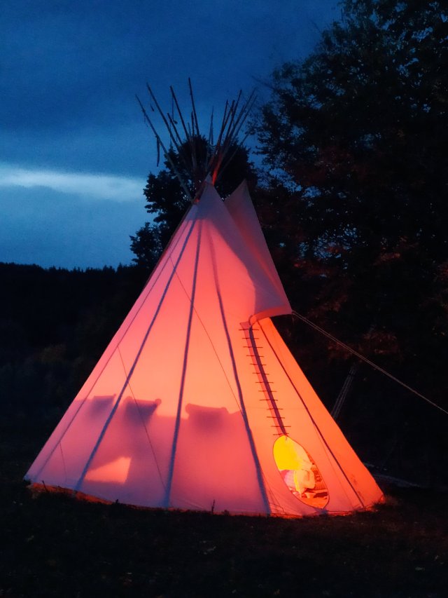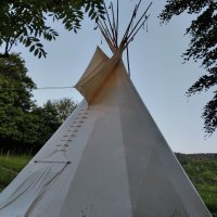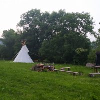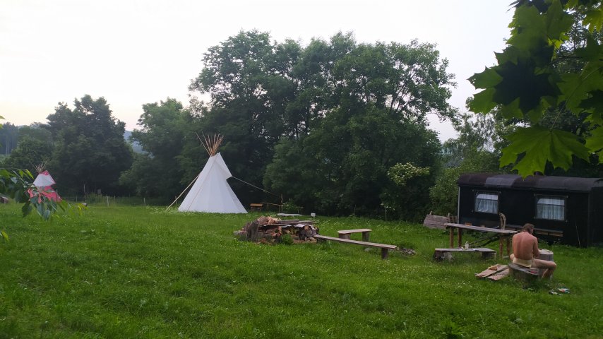 Tee-pee se nachází jako samostatné stanoviste na tábořišti u našeho rodinného statku.