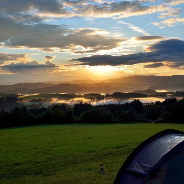 Místo je velmi klidné s krásným výhledem a protože nám vyšlo počasí, opravdu jsme si to užili. Jediná věc a to není lidské přičinění, byli jsme obklopeni stovkami berušek, které hledali, kde přečkat zimu, se západem slunce už to ale bylo dobré. Dřevo bylo kde nasbírat, oheň kde založit a i přes to, že poté celou noc pršelo, zvládli jsme s kombikem odjet bez obtíží. Majitel nám zaslal podrobné info+video, našli jsme to s přehledem. Skvělá péče. Děkujeme.