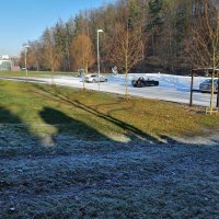 Pozemek je rovný a hned vedle asfaltové cesty s vjezdem. Vjezd v zimě bez problémů.
