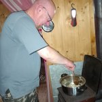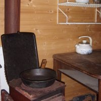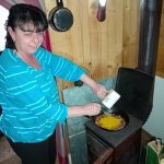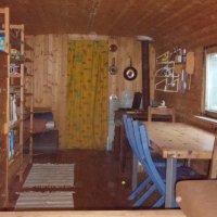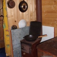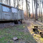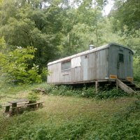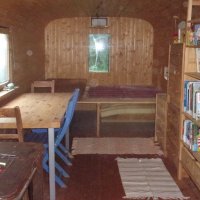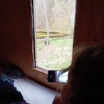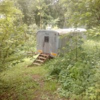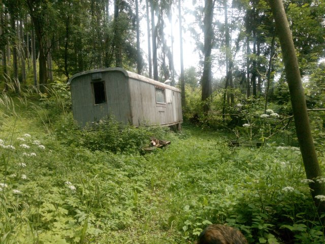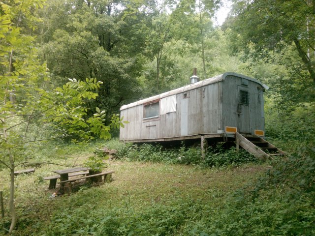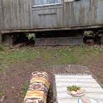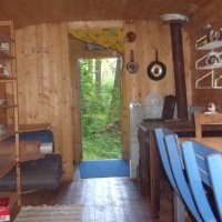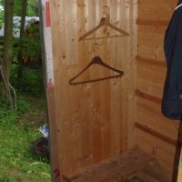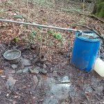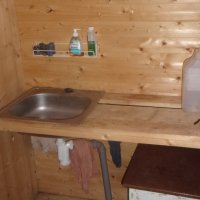 - Trubka na potoce. V maringotce je mycí koutek, je třeba si od potoka (cca 50 m) přinést vodu v barelu s kohoutkem.
