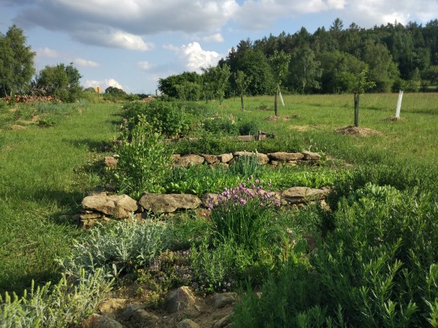 Na zahradě se můžete potkat s námi, v průběhu dne tam občas i pracujeme - sbíráme bylinky, plejeme atd. Veřejná bylinná zahrada je součástí naší BIO farmy.