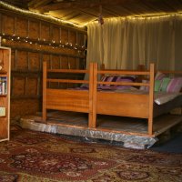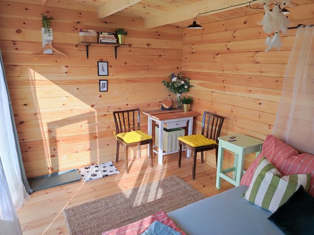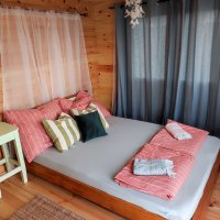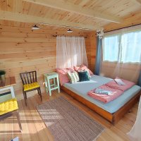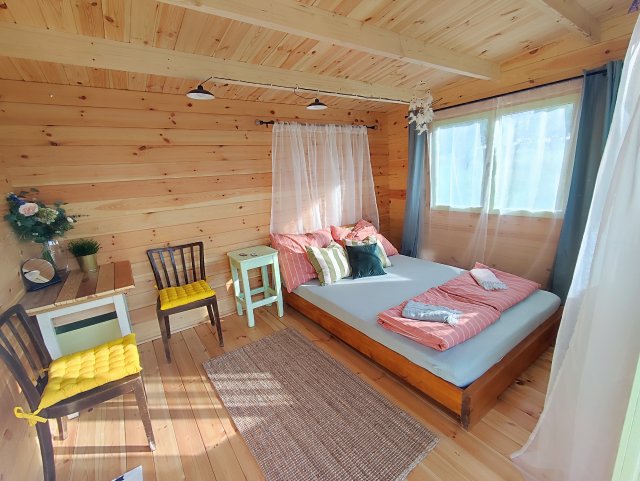 Romantické místečko uprostřed louky plné kvítí pro 2 dospělé osoby, kam se hravě vejde i přistýlka pro děti a i vaši mazlíčci v ní najdou své místečko, kde se mohou uvelebit. V posteli to sice nebude, ale mají svoji dečku hned kousek vedle vás. Chaloupka voní dřevem a novotou, najdete v ní velikou postel, nad kterou je lapač snů, pod kterým se vám bude spát jako v bavlnce. Posedět můžete u stolečku a k dispozici je v Chaloupce i nějaké to počtení a hry pro zábavu ve dnech, kdy počasí třeba zrovna nepřeje.