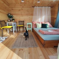 Krásné místo na odpočinek od lidí. Chatka byla na konci vesnice na louce s výhledem na pole a lesík, za domkem byly na dohled ostatní domy, ale nikdo nás nerušil. Majitelé moc příjemní, není problém s nimi cokoliv řešit. Se psem taky nebyl problém, měl nachystanou i deku na spaní :) Počasí nám sice nepřálo, takže jsme ohniště nevyužili, ale jinak je tam připravené pěkné místo na ohýnek i s roštem na grilování. Snídaně na verandě před chatkou byla prostě bezkonkurenční. Pokud máte k dispozici auto, tak není problém dojet se vykoupat do lomu nebo na koupaliště nebo se přiblížit k pěkným výletům. Určitě doporučuji :)