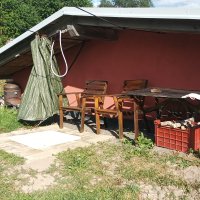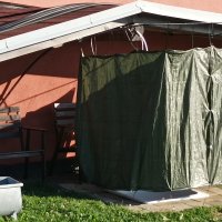 - Suchý záchod u domu.