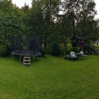 Na pozemku je detske ihrisko, trampolína, pieskovisko, šmyklavka,
