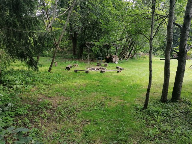 - Suchý záchod na pozemku. Splachovací záchod v domě majitele - dostupný po osobní domluvě.