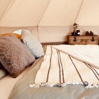 Stan nabízí příjemné kempování i pro „nekempaře“, je vybaven matrací, teplými peřinami, hromadou polštářů a dek, základními potřebami jako jsou ručníky, mýdlo, šampon, nádobí či jednoduchý vařič. Samozřejmostí jsou lampy a svíčky v hojném počtu a knihovna s vybranými knihami pro volné chvilky.