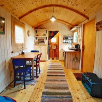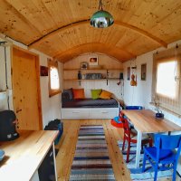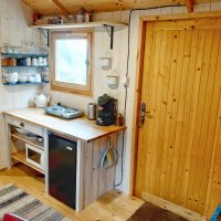 Maringotka byla dostatečně zařízená, od majitelů je hezké, že zde mají čaj, kafe i dřevo na oheň.