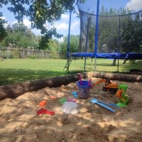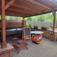 Můj první BezKemp i řízení autokaravanu. Vjezd o prsa, pozemek rovný, travnatý, veliká zahrada s hezkým zázemím pro děti ( skluzavka, domeček, trampolína, velké pískoviště s pískem bez kamínků včetně nerozbitých hraček na písek, textilní houpačka na stromě) ohniště včetně dřeva. Hned vedle parky s dvěma hřišti, které jsou hezké netozbité, cyklostezky pro začátečníky jako jsem já a 4 letý syn ideál. Taky by se dalo jet na in- line bruslích ( asfalt, celkem slušná vzdálenost). Kousek do města. Minimálně 3 cukrárny do 1km, na druhé straně města je hezký aqaupark. Kousek od zahrady je venkovní koupaliště. Na příště plánujeme i rybaření (svazová voda), řeka je hned u zahrady.Na zahradě stojí bazén.Měli jsme zahradu pro sebe, takže i náš pes byl přešťastnej. Komunikace s majiteli rychlá a milá.
