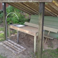 Elektrika pouze na dobíjení elektrokol, svícení pod altánem. Není možno s ní topit přímotopem.
