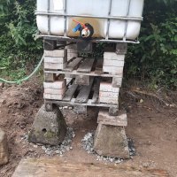 - Užitková voda se ohřívá sluncem v IBC kontejneru o objemu 600L.