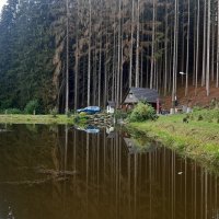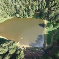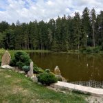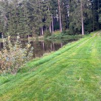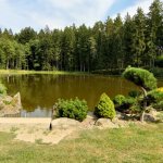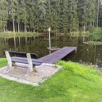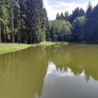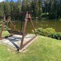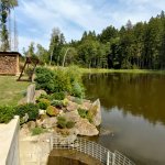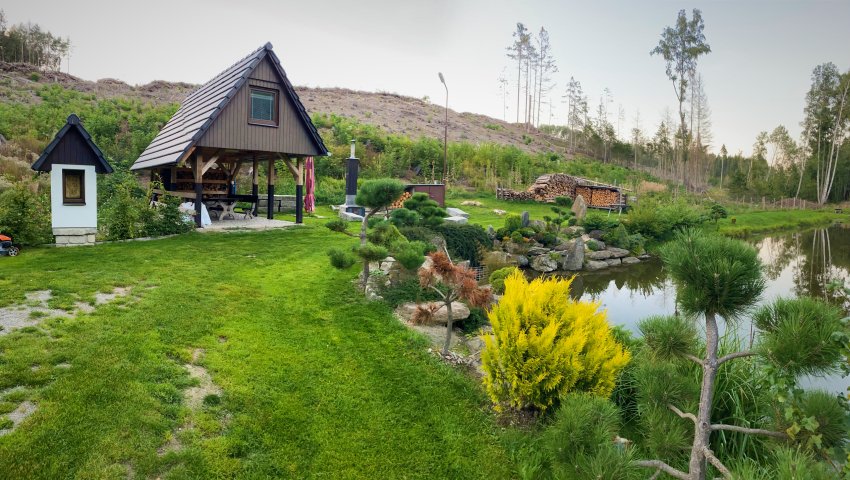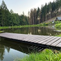 Vedle chaty je rybník, který patří k pozemku. Většinu roku voda vydrží průzračně čistá a je vhodná ke koupání.