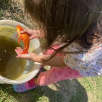 Pro zábavu je možné v našem rybníčku chytat okrasné karasy, což děti určitě zabaví.
