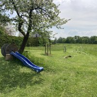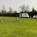 Krásně udržovaný pozemek s pohledem na Trosky a hospůdkou 150m vzdálenou :-). Klidná lokalita, kde bylo slyšet pouze jarní švitoření ptactva. Při našem příjezdu bylo po dešti, takže mokrá tráva a měkký povrch. Počasí jej částečně vysušilo. Jelikož taháme karavan předokolkou, dal jsem řetízky a vše bylo ok, včetně nepoškozeného travního povrchu. Pan otec pronajímatele fajn chlapík....