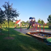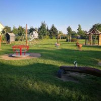 Na pozemku je trampolína a v Milovicích Mirakulum, u školy ZŠ Masaryka je velké dětské hřiště viz fota 500m od pozemku a Milovický městský park s výhledem na pratury a divoké koně.