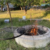 Na pozemku je ohniště s roštem, týče na buřty a dřevo, malý gril s dřevěným uhlím, vše je pro Vás k využití.