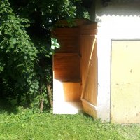 - Zachod mame pri garaži zatial len suchy = kadibudka.