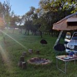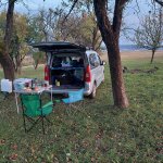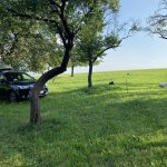 S autom/karavanom je najlepsie parkovat tam ako my na obrazku v profile / v lavom spodnom rohu mapy/, ale ulozit sa mozete na pozemku kam chcete. Najlepsie je prist, zastavit hore na kopci, zist si dole po asfaltke a pozriet ci prejdete po ceste/cervena trasa 1/ alebo hore z kopca odbocit na pole a prist zo zadu /trasa 2 na obrazku v profile/. Ked by ste potom odchadzali zo zadu po poly, treba si nadiist a spravit vacsi obluk /tak ako som nakreslil/ ak by sa smykalo alebo najlahsie len dole kopcom pokracovat po polnej ceste a ta sa pripaja na asfaltku neskor dole. ENGLISH With a car/caravan, it is best to park like us in the picture in the profile / in the lower left corner of the map /, but you can stay anywhere you want. It is best to come, stop at the top of the hill, walk down the asphalt road and see if you can pass the road /route 1/ or turn right on the hill to the field and come from behind / route 2 in the picture in the profile /. If you would then leave from the back on the field, you need to make a bigger turn / as I drew / if it would be slippery or easier is just to continue down the hill on a dirt road and it connects to the asphalt later down.
