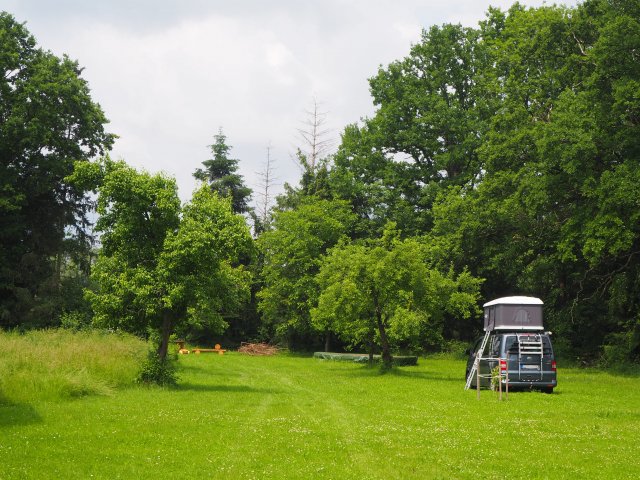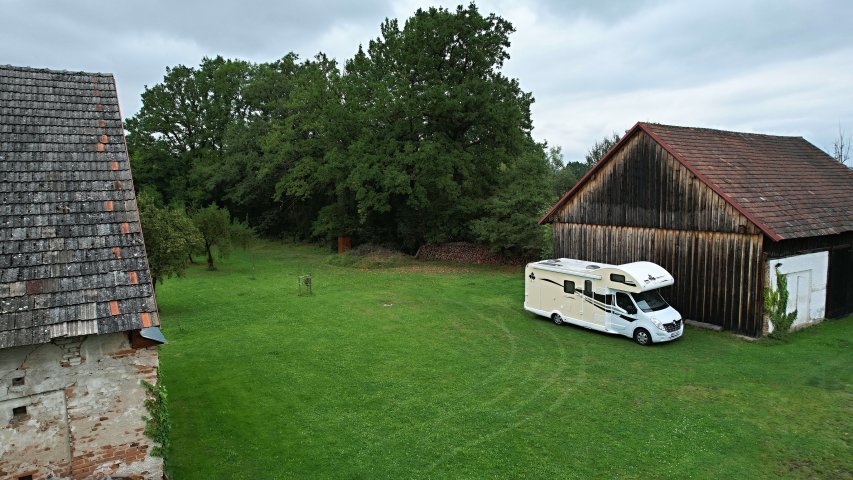 Rozhlehlý, ale klidný starý sad u stavení. Samota i soukromí. Velmi příjemní majitelé, sami karavanisté. Pozemek je rovný, dobře sjízdný a příjezdová cesta bez problémů. Za nás přesně pozemek, kvůli kterému bezkempu.cz vzniklo.