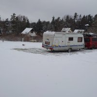 Pozemek je v mírném svahu. K dispozici jsou vám prkénka nebo najezdový klín pro vyrovnání karavanu.