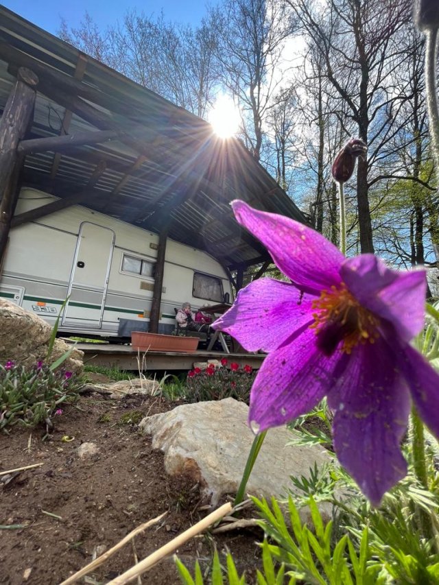 - Pitná voda se doplňuje do nádrže v karavanu.