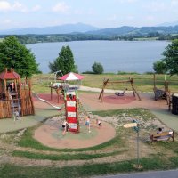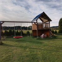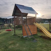 2x Dětské hřiště, pohyb na cyklostezce, koupání, vedle pozemku lamy,