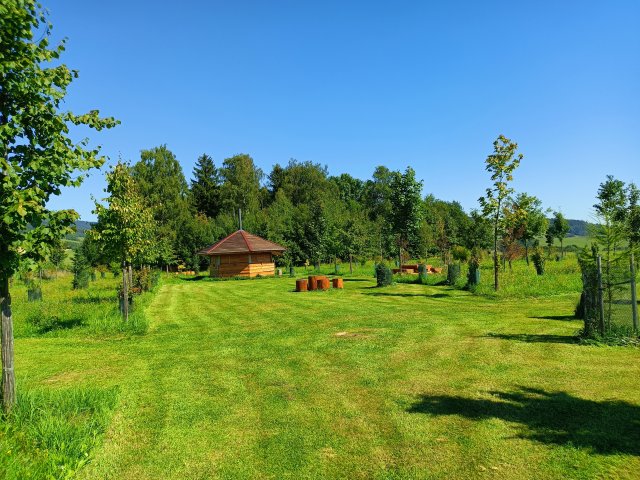 Po domluvě s provozovatelem lze využít finskou cedrovou saunu a vířivku(poplatek 800Kč) ,která je 150 m od louky u našeho domu na stromě.Budete mít nachystány osušky a saunové prádlo.