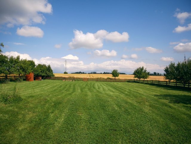 K pozemku vede asfaltová cesta a celý pozemek je travnatý, v době přívalových nebo dlouhotrvajících dešťů, může být povrch pozemku podmáčený.