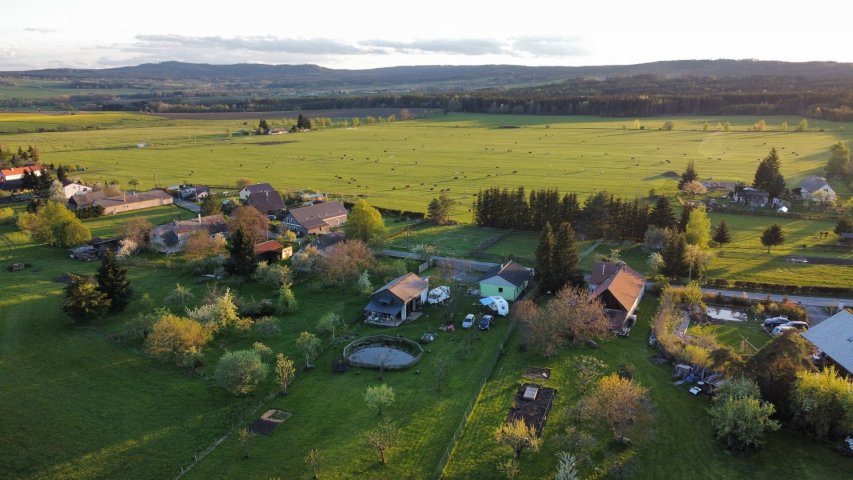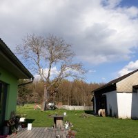Příjezd je vyštěrkován od hlavní silnice, na zahradu pouze po trávě - v případě trvalejšího deště a podmočení pozemku by mohl nastat problém s obytnými vozy, campervany, atd. a je nutné parkovat v blízkosti domu.