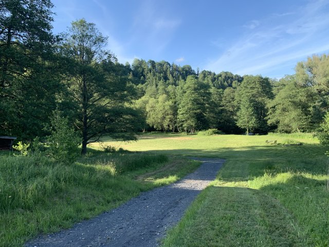 Prudší sjezd na pozemek po zpevněné vyštěrkované cestě. Šikovný řidič si vždy poradí.
