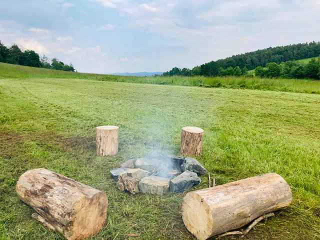 Krásné a klidné místo na kopci s výhledem do přírody s možností sledování nádherných východů a západů slunce. Super je i ohniště s grilem a možnost výletů do okolí.:) Jediné co bych vytkla je kadibudka bez dveří, když je prostor určený pro více nájemníků najednou, protože to je pak občas celkem stresík, když tam nejste sami a sejdete se. :-D Jinak bylo vše v pořádku a moc děkujeme.:)