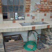 - Vodovodní kohoutek a dva dřezy u pergoly a zahradního domku