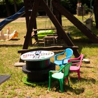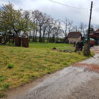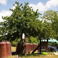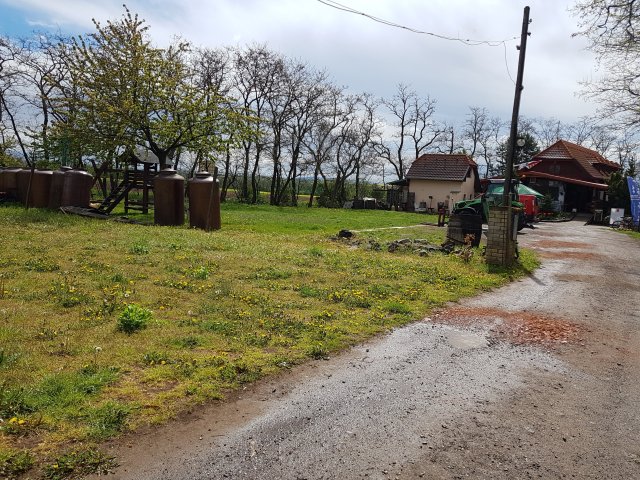 Na travnatý pozemek je příjezd po pevné dlážděné a pak zpevněné cestě. Na pozemku je tráva. V případě deště, zmáčeného podloží vypomůžeme traktorem :-).