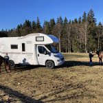 Pozemek na konci obce, kde začíná les. Možnost volby mezi loukou a zpevněným (šotolina) stáním. Majitel dobudoval přípojku na elektřinu a suché wc na místě. Pokud je potřeba voda, tak využijte studánky v obci - opravdu výborný pramen. Za našeho pobytu začínala akorát říje jelenů, velmi zajímavý zážitek slyšet kousek od karavanu jeleny říji.