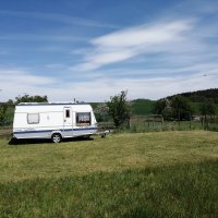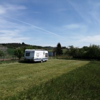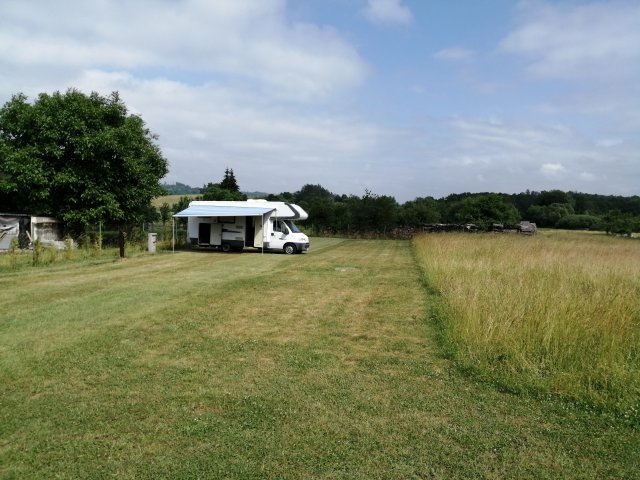 Velká posekaná louka, k dispozici voda a elektrika. Klidné místo.